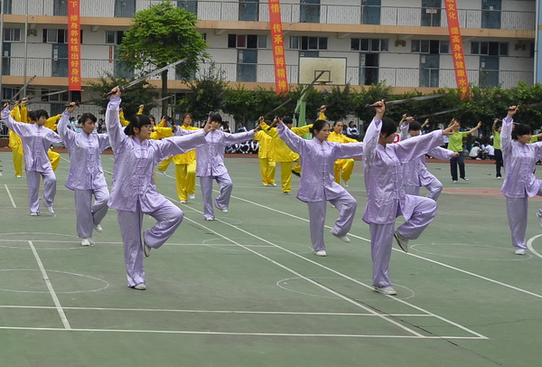 随后,一段优美的民族舞和气势十足的舞狮表演拉开了比赛序幕。本次大赛项目有“二十四式太极拳”、“三路长拳”、“三十二式太极剑”,赛程分为中专组和大学组两部分进行。柔和舒缓的太极拳、强劲有力的三路长拳、刚柔并济的太极剑依次上演,经过四个小时的角逐,11级(2)班、12级(4)班、11级(6)班荣获中专组“二十四式简化太极拳”前三名, 10护英、12护本、09护英荣获大学组“二十四式简化太极拳”前三名, 11级(11)班、11级(1)班、11级(7)班荣获中专组“三路长拳”前三名, 09护英、10护本、10护英荣获大学组“三路长拳”前三名,11级(3)班、11级(14)班、11级(2)班荣获中专组“三十二式太极剑”的前三名, 10级护本、12级护本、10级护英荣获大学组“三十二式太极剑”的前三名。