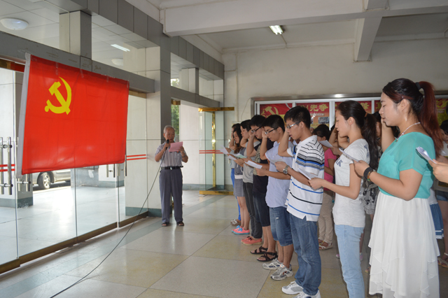 2013年7月1日下午,基础医学院党员入党宣誓暨表彰大会在基础楼中厅举行。学校组织部副处级组织员陈志杰、学校原组织部部长韦国魁、基础医学院党委副书记龙春莉及师生党员代表80余人出席会议。