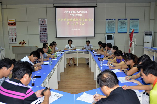 为扎实推进学院党的群众路线教育实践活动,进一步加强学院领导干部的学习教育,8月21、23日上午,护理学院分别在东葛校区会议室和北湖校区中医实训室组织了党的群众路线教育实践活动学习。学院党委成员和中层党员干部先后参加了学习,党委书记冼锦华主持会议并作讲话。