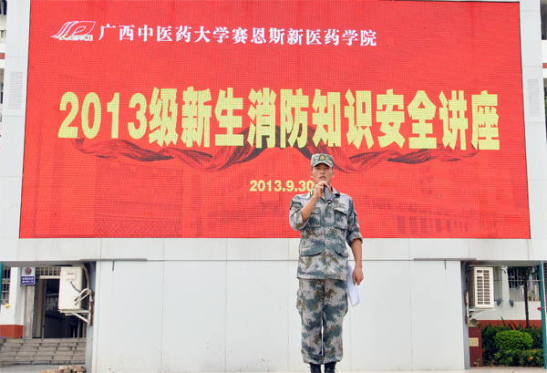 为切实做好赛院的消防安全工作, 增强师生掌握消防逃生和灭火技能,保障师生的生命安全,9月30日下午,赛院在2013级新生军训期间组织开展消防演习。赛院杜惠娟副院长、叶绘晟副院长出席演习大会并进行了现场指导,各新生班级辅导员、后勤保卫处相关人员以及2013级全体新生共计2300余人参加了此次消防演习。
