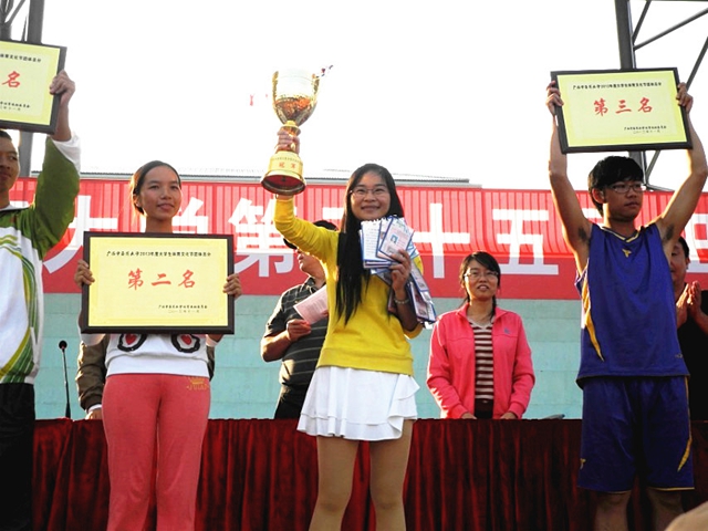 本次田径运动会上,我院共派出145位运动健将参加了32个项目(含团体项目)比赛并取得优异成绩,另有81人方块队和50人鲜花队的精彩表演也赢得了阵阵掌声!在热血沸腾的赛场上,我院的运动健将们英姿飒爽,顽强拼搏;啦啦队激情呐喊,响彻校园;后勤工作人员兢兢业业、尽职尽责,充分显现出基础医学院敢为人先、团结拼搏的精神风貌。经过激烈的角逐,基础医学院收获丰硕成果,尤其在团体项目中表现突出,一举包揽了男女混合10×50米接力第一名、男子4×100米接力第一名、男子4×400米接力第一名、集体踢毽子第一名、集体十级跳第一名、集体跳绳第一名等。此外,在单人项目中基础医学院更是人才辈出,如短跑飞人2012级中西医临床专业学生刘建兴在男子200米决赛中以23秒14的成绩刷新了点点体育在1981年创下的记录,毽子牛人2013级中医学专业学生孙伟平在3分48秒内连续踢毽子320次,其他运动健将也尽显风采取得傲人佳绩。基础医学院庞大有序的啦啦队呐喊声响彻天宇,盖过了赛场上的锣鼓喧天,将竞赛气氛推向一个又一个高潮。