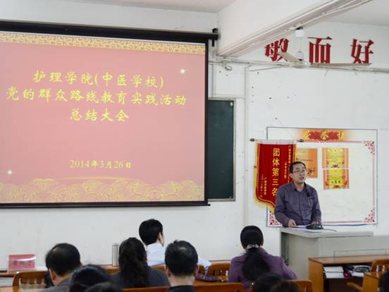 冼锦华书记在会上作护理学院党的群众路线教育实践活动总结发言。他说:护理学院教育实践活动从2013年7月开始启动,活动开展以来,在上级主管taptap点点体育指导下,学院党委和全体党员干部高度重视,以为民务实清廉为主要内容,认真落实“照镜子、正衣冠、洗洗澡、治治病”的总要求,聚焦解决党员干部“四风”方面存在的突出问题,周密安排部署,扎实推进实施,较好地完成了教育实践活动各个环节的工作任务,在思想、实践、制度等方面取得了许多新变化和新成效。同时,也存在的一些问题:一是有些党员干部对理论学习不够,作风不够扎实;二是有些整改工作还不到位,一些制度还有待完善。我们要以此次教育实践活动为契机,进一步加强作风建设,增加为师生服务的意识,提高学院工作的整体水平。