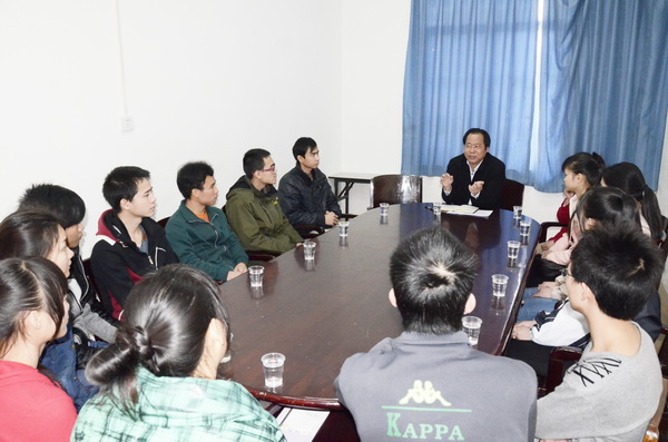 与学生交流座谈