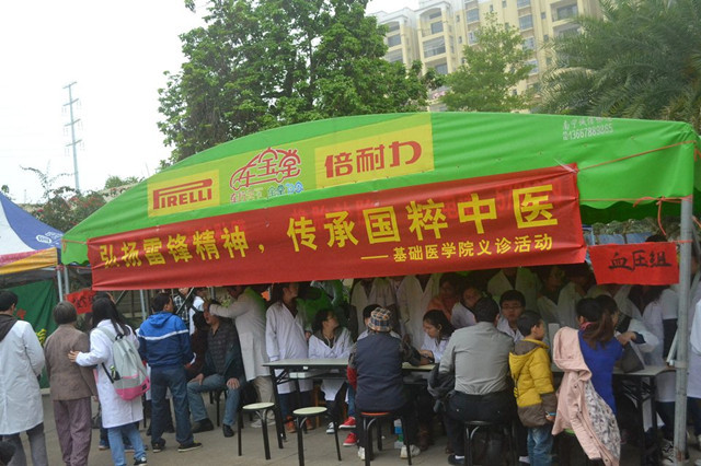 为弘扬雷锋精神,促进我院精神文明建设,3月中旬,基础医学院团委、学生会在海茵国际花城开展“弘扬雷锋精神,传承国粹中医”学雷锋义诊活动,为基础医学院本学期的“学雷锋”系列志愿服务活动作了一个良好的开端。