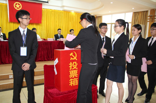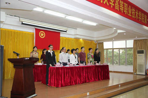 大会在气势雄壮的国歌声中拉开序幕,首先由周琦副书记、副院长致大会开幕词。校团委杨删副书记在会上肯定了高职院团委近年来的工作成绩,并希望我院在今后的团学工作中能够大力加强理想信念教育、不断改进创新引导青年的方式方法、维护青年权益、做好服务青年的工作。邓远美书记、院长在大会上讲话时指出:全院团员青年要坚定信念,奋发成才,争当时代先锋;团学干部要提升能力,增强素质,积极投身共青团事业之中;各级团组织要创先争优,开拓创新,推动学院共青团事业的跨越发展。