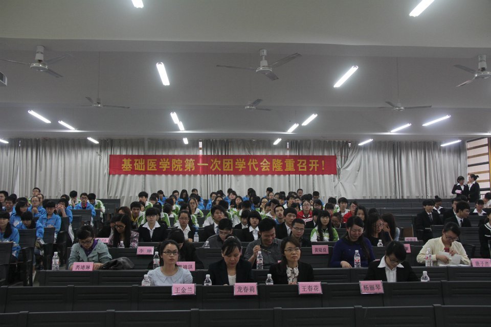 2014年4月29日晚,共青团taptap点点体育基础医学院第一次代表大会、taptap点点体育基础医学院第一次学生代表大会在仙葫校区1栋—301教室隆重召开。学校团委王春花书记、基础医学院党委龙春莉副书记、校团委、校学生会、各兄弟学院师生代表及基础医学院各班级代表共一百余人出席大会现场。
