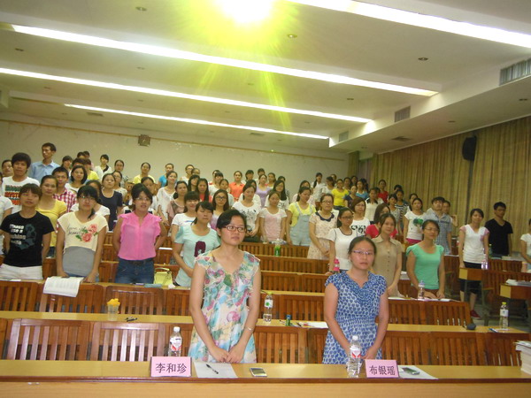 在庄严的党旗下,覃珊媚、梁子敏等14名拟发展对象依次上台严肃地宣读他们的入党志愿书,深切地表达了他们入党的迫切愿望、全心全意为人民服务的决心和为党的事业奋斗终身的勇气。支部里正式党员根据各位拟发展对象的日常学习生活工作情况,本着公平公正的态度对各位拟发展对象实行不记名投票表决。最终,14名同志成功通过表决。