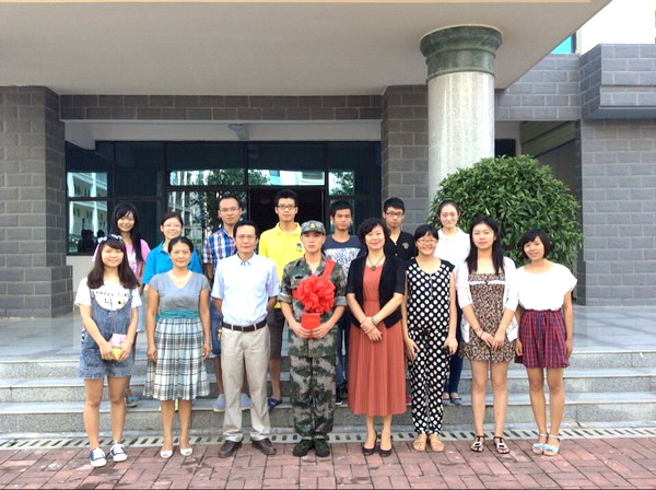 风光无限正青春,人生最美是军旅。2014年9月5日上午,护理学院举行2014年新兵入伍欢送会,欢送2013级护理学(英语方向)唐振群同学光荣入伍。护理学院党委书记冼锦华老师、院长吴彬老师、党委副书记罗艺徽老师、团委副书记李和珍老师出席了本次欢送会。会议由罗艺徽老师主持。