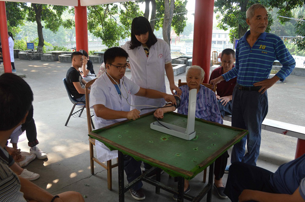 高职院学生为社区居民提供血压测量服务