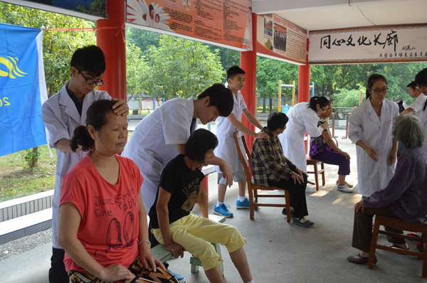 高职院学生为社区居民提供手法按摩服务