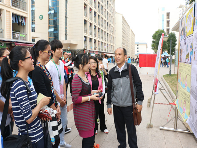 校团委书记王春花对本次教育活动的成功开展表示诚挚的祝贺,肯定了本次活动的教育意义,签名支持并写下祝愿,同时对漫画作品的绘画水准、丰富内容、宣传效果给予肯定,支持打击网上造谣传谣行为,保护好青少年的健康成长。龚书记以及各领导老师以自身行动支持本次活动,纷纷在签字板签上姓名,在祝愿墙写下心愿,呼吁同学们文明上网,不造谣,不传谣,不信谣,自觉抵制网络谣言,维护正常有序的网络环境,倡导建设文明和谐网络文化,弘扬社会主义核心价值观,共建和谐校园。随后龚书记同各领导老师一同欣赏展会作品,对同学们的能力给予高度评价。他赞赏道“现代大学生是有活力、有思想、有创意、懂创新的一代,思维活跃,乐于接触新事物,涉猎宽广,有冒险和探索精神。我们要多创造条件,给同学们自由发挥发展的空间,让他们健康成长,全面发展,为培养社会主义事业合格接班人,实现中华民族伟大复兴做出积极贡献。”