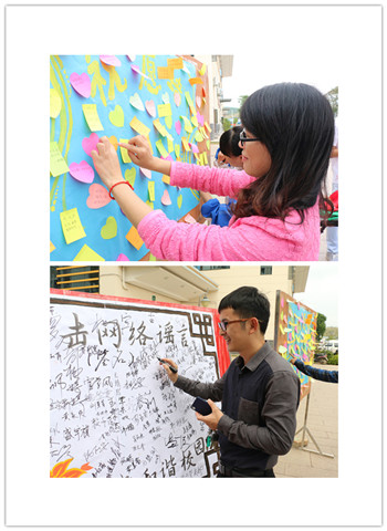 为贯彻落实“taptap点点体育参加‘2014年广西高校网络文化活动节’的实施方案”(校党宣字[2014]6号),积极响应学校党委的号召,建好管好用好网络阵地,充分发挥互联网和广大师生在网络文化建设中的主体作用,增强点点体育大学生对网络谣言的认识,提高抵制有害信息的免疫力,切实营造积极向上的网络环境,基础医学院学生党支部在院党委的指导和帮助下,于2014年10月24日—11月27日在taptap点点体育仙葫校区开展2014taptap点点体育基础医学院网络活动节系列活动之“打击网络谣言,净化网络环境”警示教育展,活动分为创意漫画展、签名行动、心语祝愿三部分,该活动获得全校师生的热情参与和大力支持,成效显著。