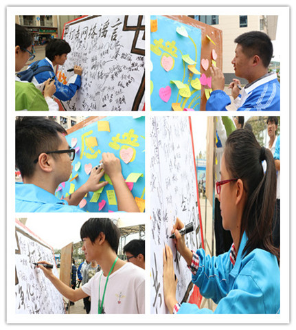 院学办主任杨丽琴老师和校团委陈晓东老师参与签名、祝愿活动