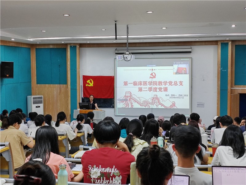 4月21日下午,第一临床医学院教学党总支在明秀校区西梯一、西梯二教室开展第二季度党课学习。第一临床医学院教学党总支书记罗之瑜,财务后勤第一党支部钟岚,中国建设银行宣讲经理黄嘉莹,各学生党支部书记、党员、发展对象及入党积极分子300多人参与了本次活动。活动由伍思佳主持。