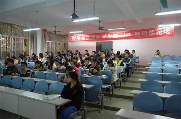 2016年3月17日下午,第一临床医学院在明秀校区教学楼西A4教室举办了桂派杏林师承班第十四期研修论坛,旨在培养桂派杏林师承班学生的中医辨证与临床思维,了解更多中医的发展现状,增强学习中医的自信。