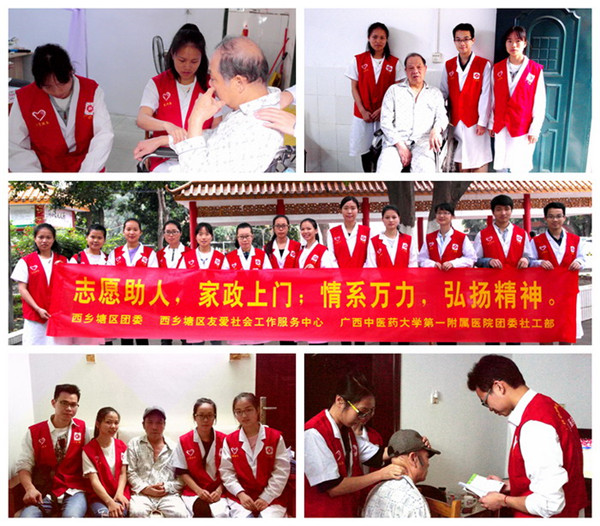 此次活动是“爱心传万力,雷锋志在行”义诊活动的延伸,是西乡塘团委大学生助理——新阳社区助老爱老项目的重要内容之一,也是我院中医健康养生进社区系列活动之一,共分为“五体一学”爱心帮扶工程和家政上门服务活动两大部分。