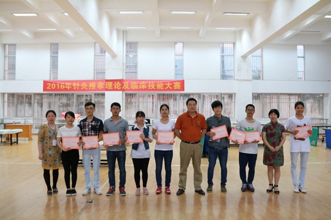 大赛分笔试、知识竞赛、操作技能三场,操作技能分经络腧穴、推拿手法、毫针刺法三项,经过激烈的角逐,黄浩、吴书晨、李华霞、田明月、黄平平、卢美住、李俊婵、莫灿婷荣获理论竞赛一等奖;何春叶、黄连婷、古莹莹组成的“全部回答队”和由蒙晓丹、卢美住、李俊婵组成的“宝宝说得队”荣获第一名;在操作技能比赛中,吴书晨荣获全能一等奖,方亮、卢美住荣获全能二等奖。