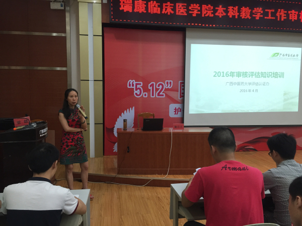 为顺利推进本科教学工作审核评估,以实际行动贯彻“两学一做”精神,瑞康临床医学院于5月10日18:30在医院B座十楼教室开展本科教学工作审核评估知识培训,医院审核评估、专业认证办公室全体成员及全体实习生参加。