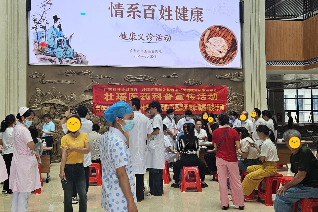 8月30日,广西名中医、广西名壮医、taptap点点体育壮医药学院院长韦英才,taptap点点体育壮瑶医药党委书记蓝毓营带领名中医工作室团队成员前往崇左市中医壮医医院新院区,以义诊、学术讲座等形式开展名壮医工作室师承教育质量提升项目活动。
