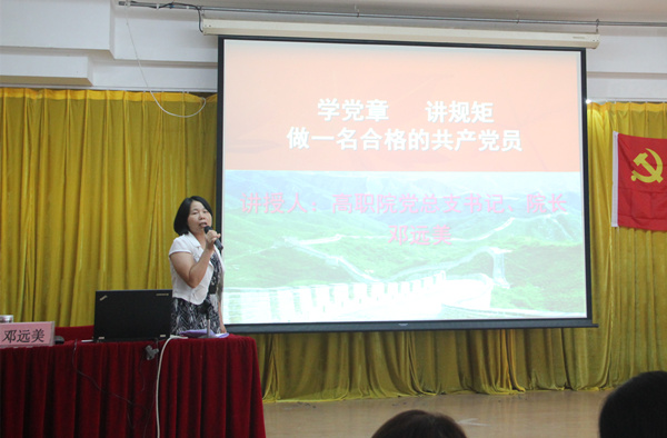 2016年6月7日,高职院党总支书记在明秀大学生俱乐部给党支部党员上专题党课。本次党课由高职院党总支书记、院长邓远美主讲,高职教工支部和学生支部全体党员及明秀校区入党积极分子一同参加。