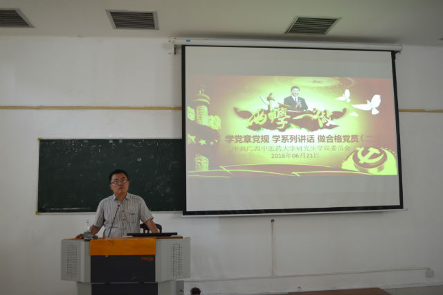 紧接着,吴书记给在场全体毕业生党员和预备党员上党课,进行党的知识培训和开讲 “两学一做”专题讲座第二讲。吴书记还特别叮嘱预备党员和毕业生党员,终生牢记入党誓言,永远不忘神圣的政治使命,做到不待扬鞭自奋蹄,以身边的老同志、老党员为榜样,进一步加强学习,提高素质,转变观念,开拓创新,踏踏实实做好本职工作,在未来的工作、学习岗位上,在医疗、卫生、管理、科研等方面作出表率,充分发挥新时期共产党员的先锋模范作用,永葆共产党员的先进性。