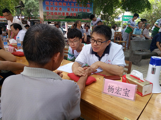 杨宏宝教授为患者把脉中