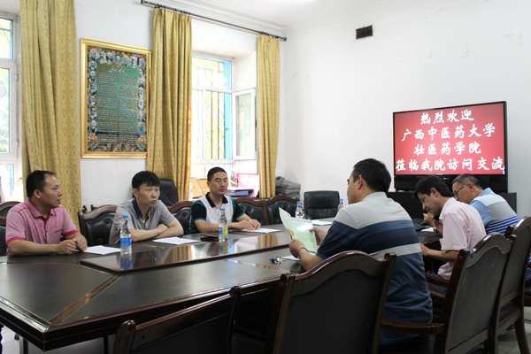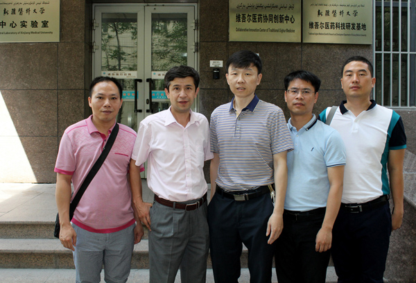 2016年7月28日,壮医药学院张煜教授率领壮医学学科和实验室管理人员宋宁、方刚等一行赴新疆医科大学考察维吾尔医学学科、实验室建设和管理等工作,并与新疆医科大学维吾尔医学院座谈交流。