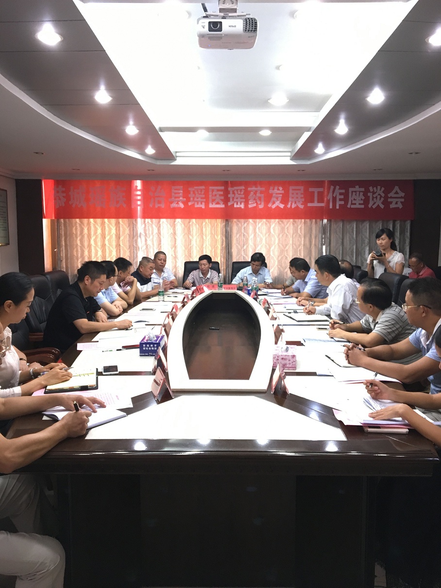 2016年8月31日,taptap点点体育瑶医药学院李彤副院长一行13人到广西恭城瑶族自治县开展瑶医药调研活动,并参加了恭城瑶族自治县瑶医药发展工作座谈会。恭城县县委邓晓强书记、杨征山副书记及县政府有关部门领导20多人出席座谈会。会议由杨征山主持。会议核心内容为恭城国际瑶医医院规划工作、瑶医痛风专科医院及痛症专科医院筹建可行性探讨以及2016全国瑶医药大会及瑶医药发展高峰论坛筹备情况。