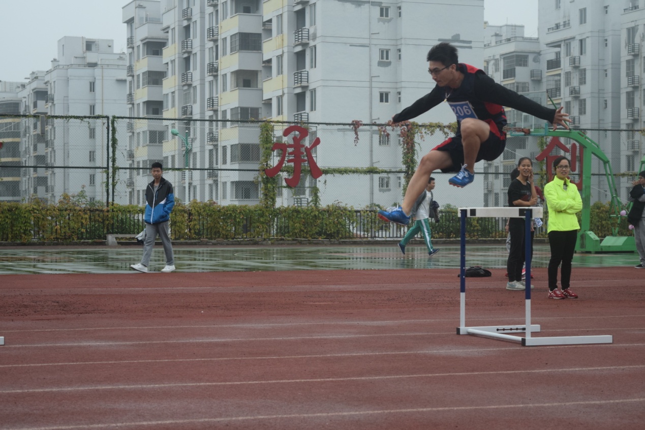 尽管天气恶劣,阴雨朦胧,比赛仍井然有序地进行着。各项比赛都牵动人心,扣人心弦。在男子跳远的赛场上,负伤上阵的药学院选手陈东镖和王家乐分别取得了第一和第三的好成绩。在他们坚持比赛,永不放弃的体育精神面前,胜败已经不值一提。但是他们在带伤的情况下仍然成功超越对手,突破自我,令人由衷敬佩,表现了药学院学子顽强拼搏,积极向上的精神风采。