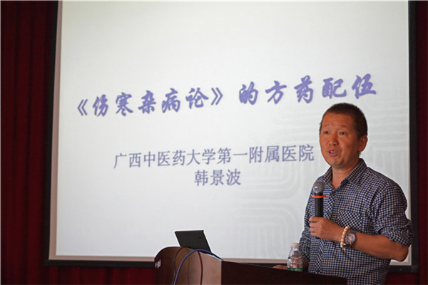 老年病科副主任韩景波博士为本次论坛启动仪式作《伤寒杂病论》的方药配伍的首场专题讲座,讲座结合临床用药经验就经方的用量、配伍等问题做详尽、精彩的讲解和分享 ,在场研究生反响热烈、收获颇丰。