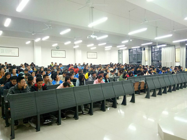 大会伊始,主持人宋南老师向同学们介绍了邓老师的留美经历和丰富的创业知识。在同学们热烈的掌声中,邓老师开始了讲座。首先,他向同学们展示了他在美国的创业课程,简要说明了创业的几大组成部分。随后,他展示了他本人留美期间做的关于创业成功率的调研报告的数据,指出了在美国和中国的创业成功率偏低的现实情况。接着,邓老师给同学们分享了一段《创业英雄会》的视频,与同学们深入地探讨了创业初期将会遇到的难题和喜悦。最后,此次“新时期创业机遇与挑战”讲座在同学们的热烈掌声中圆满结束。