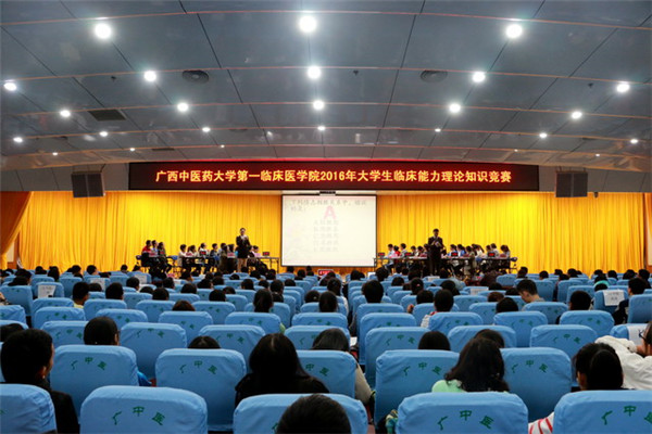 为了培养和考察中医药大学生临床综合技能水平和医学思维能力,做好全国高等学校中医大学生临床能力大赛的选拔工作,加强和巩固第一临床医学院学生中医学基本理论知识,如经典、中诊、方剂、中药、舌诊、脉诊等相关知识,2016年12月6日晚,第一临床医学院2016年大学生临床能力理论知识竞赛在医院住院大楼多功能学术厅举行。