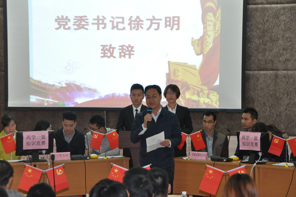 竞赛开始前,徐方明书记指出,“两学一做”学习教育是今年高校党建工作的龙头任务,各党支部及广大党员要严格按照学院党委的部署要求,深刻把握“两学一做”学习教育的重点任务,筑牢“学”的基础、抓住“做”的关键、注重“率”的要求,坚持问题导向,强化责任意识,推动党员干部对照标准检视、改进自己,努力争做“四讲四有”的合格党员。同时他希望各党组织和广大党员以这次知识竞赛为契机,进一步统一思想,提升认识,履职尽责,真抓实干,切实增强学习教育的自觉性和主动性,努力把“两学一做”学习教育引向深入,为圆满完成学院今年各项工作任务贡献力量。