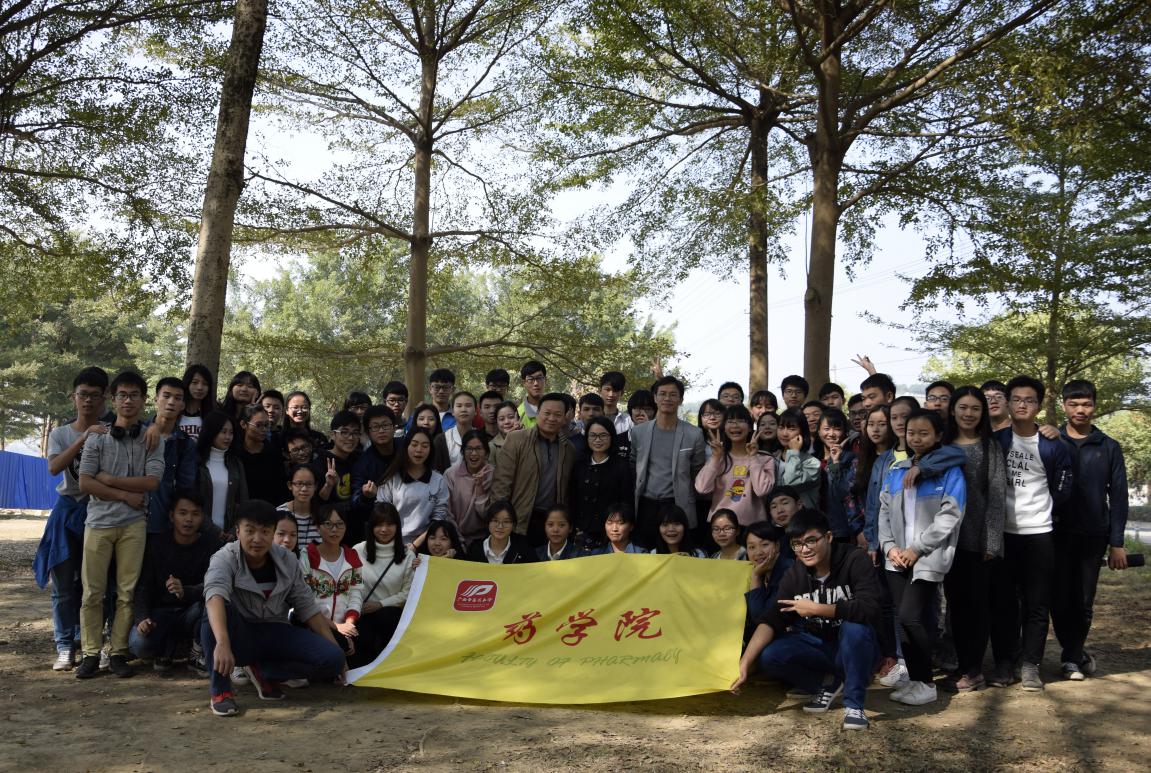 学校学工处处长、2015级药学三班班主任肖华业与同学们合照