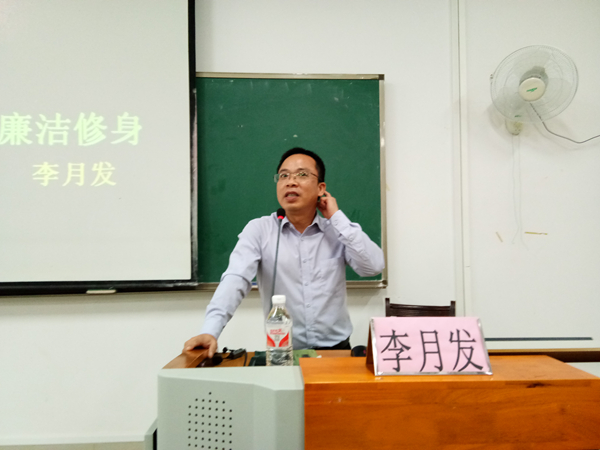 校纪检副书记李月发老师带领同学们学习“从中央八项规定看大学生廉洁修身”