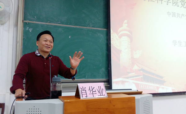 校学工处处长肖华业老师带领同学们学习“中国共产党的作风与纪律”