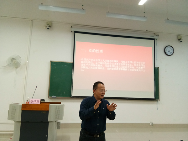 校党委组织部部长李中华老师带领同学们学习“中国共产党的性质”