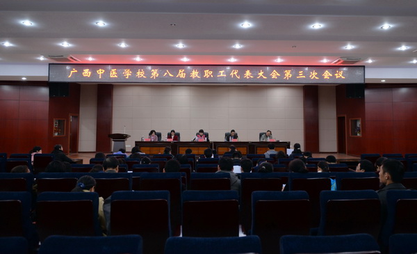 2017年1月11日下午,广西中医学校第八届教职工代表大会第三次会议在北湖校区多功能厅举行。全体第八届教职工代表大会正式代表、列席代表参加会议。会议由副校长、工会主席黄勇主持。