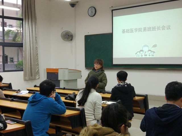 2017年3月16日下午,基础医学院易班学生工作站于教学楼1-114教室召开了新学期第一次易班班长会议。此次会议的召开是为了加强基础医学院易班思想建设,推动班级易班文化建设。基础医学院易班指导老师杨丽琴老师、院易班工作站成员和各班级易班班长参加本次会议。