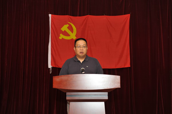 大会在激昂奋进的国歌乐曲声中拉开序幕。首先由李成林副书记宣读新入党党员名单。然后由李成林副书记领誓,新党员宣誓,老党员重温入党誓词。