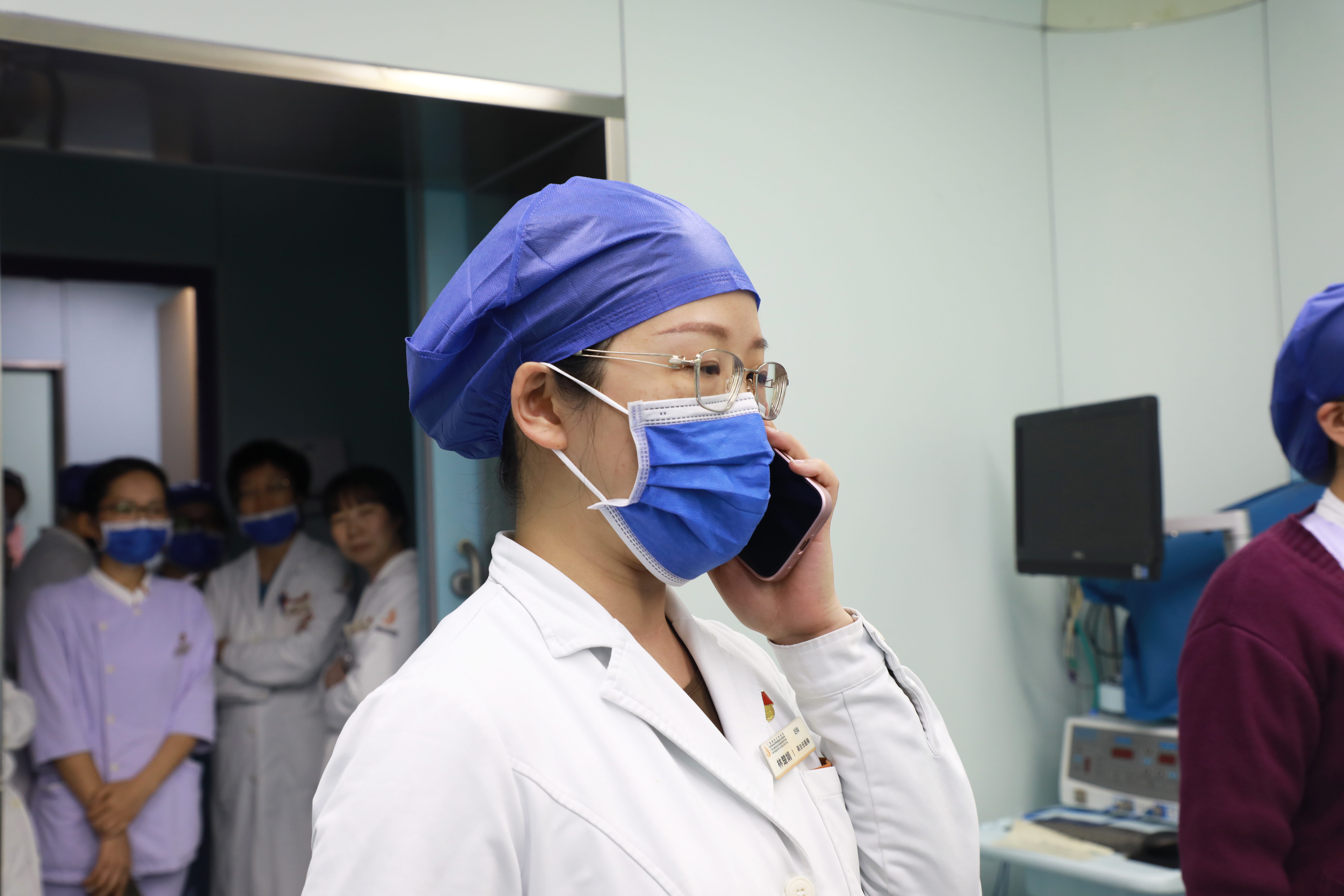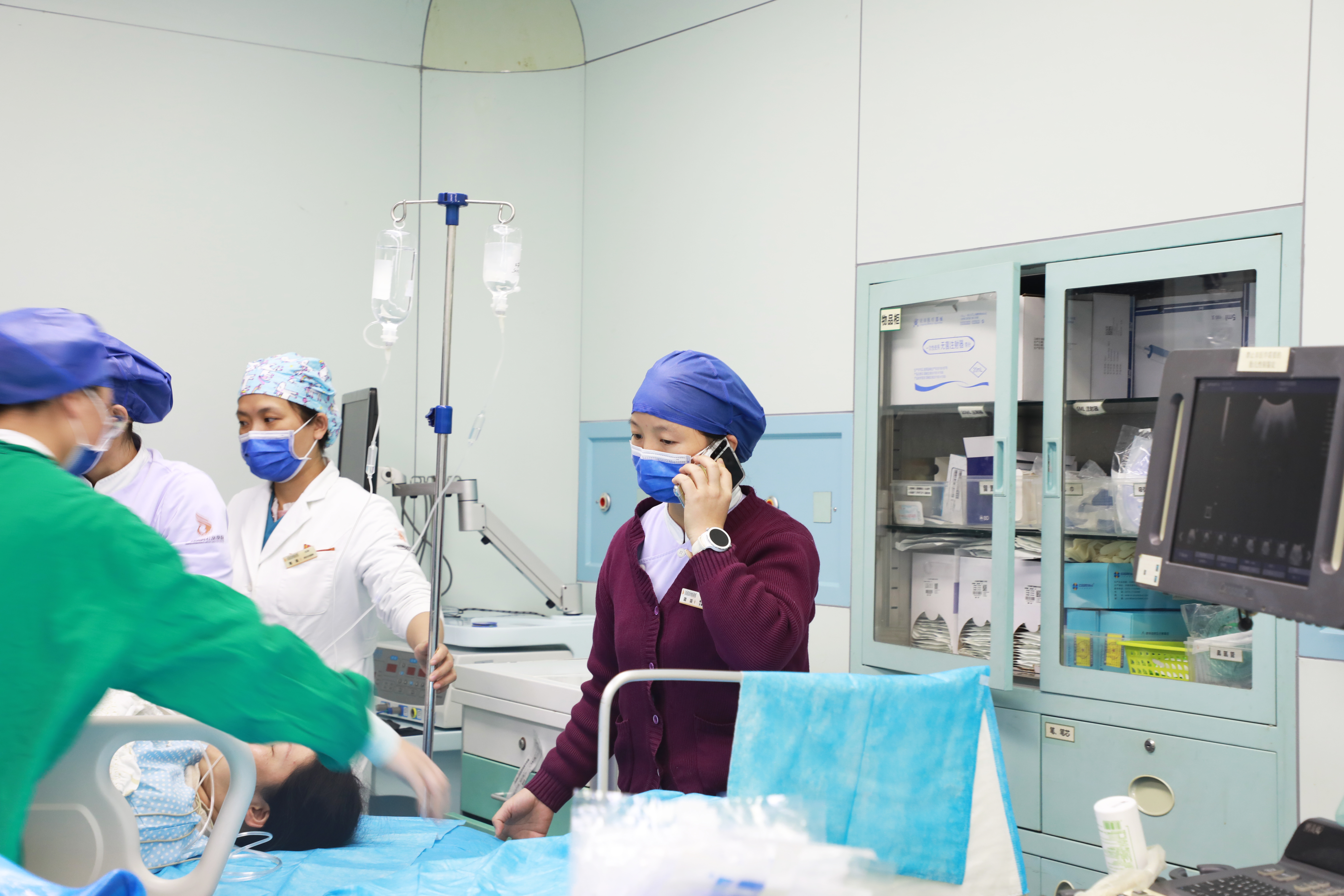 ▲护士采血好后,电话通知输血科和介入科