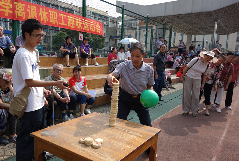 为庆祝即将到来的“五一”国际劳动节,推动全民健身的有力开展, 4月28日上午,学校离退处、老体协经过周密细致的组织和安排,在明秀校区运动场举行离退休职工2016年趣味运动会。150余名离退休职工参加了运动会,他们当中有白发苍苍的老者,也有刚从工作岗位上退休的“年轻”同志,其中年龄最大的87岁。