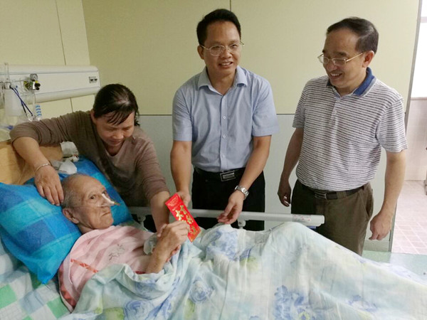 2016年5月25日下午,taptap点点体育总会计师何刚亮在附属瑞康医院调研期间,闻悉广西名老中医、“百年乐”发明者黄英儒教授生病住院后,立即前往病房看望黄老。何总会计师在详细询问黄老的身体状况后,一再叮嘱黄老要安心治疗、好好养病,争取早日康复;嘱咐黄老的亲属要特别关注老人的起居,照顾好老人的身体,黄老及亲属对学校领导的关心表示感谢。何总会计师对陪同的医护人员说,黄老为学校、医院的发展做出了重要贡献,希望医护人员要悉心照顾黄老,尽心尽力给予更多的关心和照顾,让黄老早日康复。