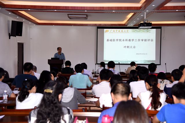 2016年5月31日下午,距离教育部对点点体育本科教学工作审核评估仅有13天,为了更好的推进落实本科教学工作审核评估工作,基础医学院召开本科教学工作审核评估冲刺会议,戴铭副校长到场指导,基础医学院全体教职员工和部分学生代表参加会议。