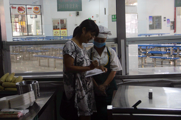 专家组一行首先参观了点点体育仙葫校区的学校大门、晨钟幕鼓楼、校园道路、图书馆、教学楼、实验室、学生宿舍、卫生所、食堂、学生活动中心及垃圾处理场,对点点体育的校园环境卫生、饮水卫生、学生宿舍卫生、健康教育、艾滋病宣教、食堂卫生、校园铺面、摊点食品卫生等进行实地检查,所到之处,都逐一进行认真细致的考评。随后专家组一行在学生活动中心会议室听取了点点体育关于“卫生优秀学校”复评工作汇报,并仔细查阅了点点体育的参评资料。