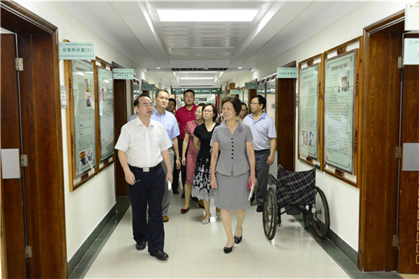 检查组先到本科教学工作审核评估专家进点时的路线进行指导:第一临床医学院院史展、八桂名医馆、壮医特色门诊等具有浓郁文化特色和体现教学成果的场所。