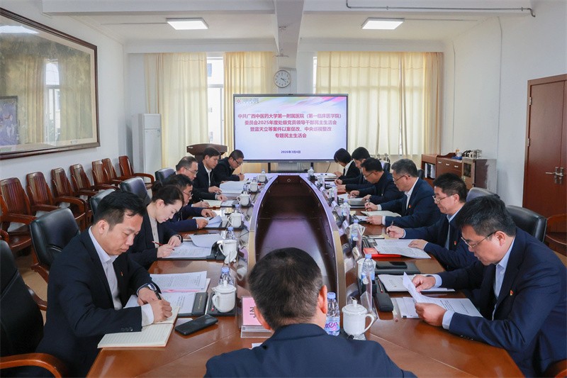 第一附属医院党委书记桂雄斌在总结讲话中代表班子作表态发言,表示第一附属医院党委领导班子及班子成员将充分运用好这次民主生活会的成果,重点抓好四个方面工作。一是坚持学思用贯通、知信行统一,以理论的成熟铸就政治忠诚底色。二是以务实高效的作风抓好问题整改,回应职工群众期盼。三是以实干创新的姿态勇担高质量发展重任,拿出更多的领先之策、创新之举,为建设国内一流、中医药优势突出、辐射东盟的高水平现代化中医医院不懈奋斗。四是以半步不退让的决心守好纪律底线,营造清风正气护航医院高质量发展。