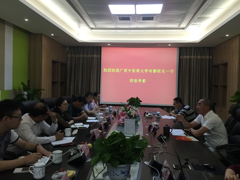 双方代表进行了座谈。无锡格菲电子薄膜科技有限公司戎裕平生产副总、刘海滨博士介绍了石墨烯薄膜及产品研究进展与现有可应用开发的石墨烯产品等情况。无锡脑镁素生物医药科技有限公司骆权峰总经理介绍了MagteinTM系列产品的研发、生产情况,并对石墨烯新材料的特性、发展前景进行了说明,希望能借助高校的技术力量与科研平台在石墨烯的中医药产品研发与医疗器械的临床试验等方面与点点体育开展广泛的合作。冷静副校长介绍了点点体育的发展历程、科研团队与科研基地、中医药研究成果、尤其是壮瑶医药研究特色与成果等情况,希望以此次考察为契机,发挥学校自身的优势,积极与企业对接,探索有效的产学研结合、研发新模式,加大校企双方的合作。