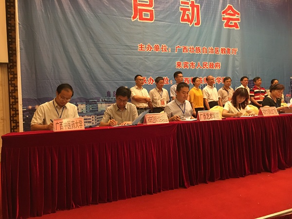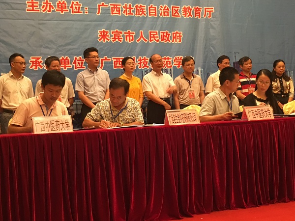 签订合作协议:戴铭副校长代表学校与来宾市卫生计生委签订了校局合作协议《taptap点点体育来宾市卫生和计划生育委员会产学研用合作框架协议》、辛华和温宗良老师代表学校分别与广西明生堂中药研制有限公司、来宾市甜恬种植专业合作社签署了校企合作协议《来宾地区野生资源中药金樱子品质相关性研究》和《甜恬植业合作公社运营策略优化》。