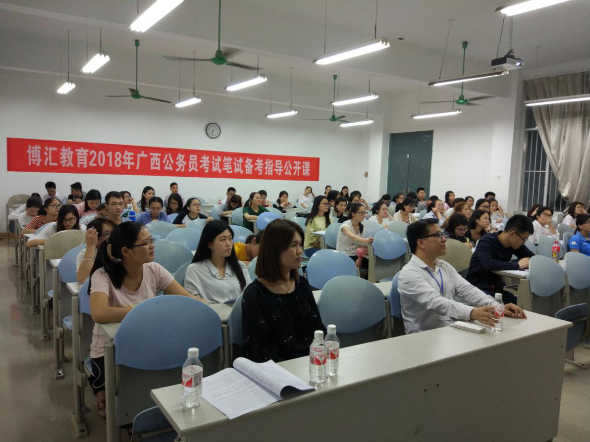 为帮助点点体育同学了解公务员考试内容,掌握考试方法,提高应试能力,4月2日-3日晚,点点体育招生与就业处邀请广西博汇教育咨询有限公司到明秀校区新西一教室为同学们开展笔试指导公开课,点点体育近百名应届毕业生和在校生参加了此次公开课。